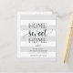 Bezaubernde und moderne Ankündigungen ließ Freunden und Familie von Ihrer neuen Zuhause Sweet Zuhause! Das Design weist einen dezenten, gestreiften Hintergrund in Blassgrau und Weiß auf, mit "Zuhause Sweet Zuhause" in weichem schwarzem Skript und Blocktypografie. Verwenden Sie die Vorlagenfelder, um Ihr benutzerdefiniertes Intro, Ihre neue Adresse und Ihre Namen hinzuzufügen. Informationen wiederholt sich auf der Rückseite mit Platz für die Adressierung des Empfängers.