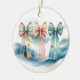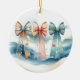 Eine reizvolle Anordnung von drei Bögen mit hintereinander liegenden Schwänzen, die jeweils ein einzigartiges Muster subtiler Designs in sanften Farbtönen aufweisen, die alle durch einen Hauch von Aquarellfarbe ergänzt werden. Dieses stilvolle, bogenförmige Dekor fügt Ihrem Baum eine Touch Eleganz hinzu.
