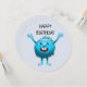 Das zauberhafte und zarte kleine blaue Wesen mit den großen Zähnen sagt zum Geburtstag.