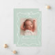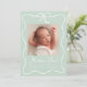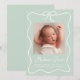 Herzlich willkommen bei Ihrem kleinen Mädchen mit dieser süßen Geburtsankündigung mit einem weichen, minzgrünen Hintergrund, der von einem zarten weißen Bogen und einem Band-Rahmen betont wird. Das Foto Ihres Babys wird in der Mitte wunderschön präsentiert. Der Name des Babys wird in fett gedruckten Schriftzeichen dargestellt und die Geburtsdetails werden unten sorgfältig angeordnet. Dieses personalisierte Design verbindet sanfte, erfrischende Töne mit zeitloser Eleganz - ideal, um Ihre Freude mit Freunden und Familie zu teilen.