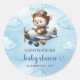 Celebrate your little aviator’s upcoming arrival with this adorable boy baby shower sticker featuring a cute teddy bear pilot flying a vintage airplane. Designed in a charming blue and brown color palette, this aviation-themed sticker adds the perfect touch of sweetness and adventure to any baby shower décor. Use it for favor bags, envelopes, gift packaging, party décor, thank-you tags, or diaper raffle prizes to instantly elevate your event’s theme.