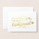 Weiße Dankeschön-Karte für Ihre Brautjungfrau, gedruckt mit echter Goldfolie. Danke, dass du meine Brautjungfrau ist geschrieben mit zwei verschiedenen, aber passenden wunderschönen Schriftart, umgeben von Doodles wie einem Herz, Blätter, Rochen und Wirbel.