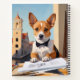 Fügen Sie dem Raum eine Touch architektonischen Charmes hinzu, indem Sie dieses hübsche Kunstbild eines Corgis in einem urbanen Rahmen als Architekt verkleidet haben. Ideal für Hundefreunde und Architekturbegeisterte.