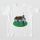 Boys T-shirt with Whimsical Home and Pet Friends Graphic. Add a fun graphic tee to his wardrobe with this comfortable shirt featuring the cute blue house illustration. The design includes a friendly dog playing in the yard and a cat peering from the window. This durable t-shirt is perfect for play, adventure, or everyday wear. The charming residential artwork offers a unique and playful style. A great gift idea for boys who love animals and cheerful, lighthearted designs.