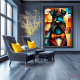 Mit scharfen Augen und tadellosem Stil trägt dieser geometrische Hund seine Krawatte wie ein echter Gentleman. Erbaut aus fett kubistischen Flugzeug und strahlenden Farben, verbindet er Loyalität mit Eleganz in einem ikonischen Portrait. Ein perfektes Stück für moderne Räume und Liebhaber von klassischem Charakter.