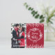Elegantes Design mit einer eleganten, modernen "JOYEUX NOËL" Typografie, auf Rot mit Kieferngrenze und Ihrem Foto. Benutzen Sie das Tool Anpassen, um Ihr eigenes Foto (Paar, Kinder, Foto, Haustier-Foto) hinzuzufügen, um die Farbe der Namen zu ändern, um die Foto-Farben anzupassen. Mehr Ideen in meiner Weihnachts-Foto-Sammlung.