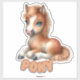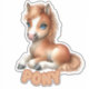 Dieser große Kinderzimmer-Aufkleber zeichnet sich durch ein unwiderstehlich niedliches, Cartoon-artiges Pony mit freundlichem und sanftem Ausdruck aus. Das Pony wird dargestellt, sitzend mit seinen Beinen unter seinem Körper gefaltet, und direkt auf den Betrachter mit großen, hellblauen Augen. Es hat einen weichen, hellbraunen Mantel mit einem weißen Pflaster auf Gesicht und Beinen. Mane und Schwanz des Pony sind fließend und gewellt, was zu seinem liebenswerten und hässlichen Aussehen beiträgt. Unter dem Pony ist das Wort "PONY" in fett gedruckten, spielerischen Buchstaben geschrieben, die das ansprechende und kinderfreundliche Design perfekt ergänzen.