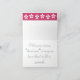 Diese elegante Notizkarte weist einen raspberry rosa Rahmen am unteren Rand der Karte mit einem Muster von zarten Blüten aus weißer Kirsche und einem einfachen Drehbuch "Danke" auf der Vorderseite auf. Im Inneren finden Sie einen passenden, leuchtend rosa und mit einem Federmotiv versehenen Rahmen entlang der oberen Klappe und einen Platz, um Ihre eigene, maßgeschneiderte Dankesbotschaft auszufüllen. Eine große Sakura in Himbeere schmückt den Rücken, um eine letzte Touch der Klasse hinzuzufügen. Passen Sie den Text vorne und innen an, um Ihren eigenen Geschmack und Zweck zu Anzug zu bringen, einschließlich Farbänderung, Größe und Schriftart, wenn gewünscht. Verpassen Sie nicht, die anderen Produkte des Charming Sakura in Raspberry Set zu testen, um einen wirklich koordinierten Look für Ihre Veranstaltung zu schaffen.