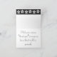 Diese elegante Notenkarte weist einen schwarzen Rahmen am unteren Rand der Karte mit einem Muster von zarten Blüten aus weißer Kirsche und einem einfachen Drehbuch "Danke" auf der Vorderseite auf. Im Inneren finden Sie einen passenden schwarzen und Federmotiv-Rahmen entlang der oberen Klappe und einen Platz, um Ihre eigene persönliche Dankesbotschaft auszufüllen. Eine große schwarze Sakura schmückt den Rücken, um eine letzte Touch der Klasse hinzuzufügen. Passen Sie den Text vorne und innen an, um Ihren eigenen Geschmack und Zweck zu Anzug zu bringen, einschließlich Farbänderung, Größe und Schriftart, wenn gewünscht. Verpassen Sie nicht, die anderen Produkte des Charming Sakura in Black Set auszuprobieren, um einen wirklich koordinierten Look für Ihre Veranstaltung zu schaffen.