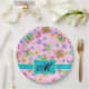 Sie werden mit diesen monogramm Tellern Liebe mit einem femininen und romantischen rosa Schmetterlingsmuster machen. Auf diesen stilvollen und personalisierten Tellern fliegen wunderschöne, weißliche Schmetterlinge dick herum. Gut für Party oder um einen Kuchen zu halten. Sie können das Monogramm in einen Namen oder andere Wörter auf dem türkisfarbenen aquamarinen blauen Emblem und Streifen ändern. Die wunderschönen Lavendel-, Fuchsienrosa-, türkisfarben-, orange- und gelbfarbenen Farben verleihen dem hübschen rosa Hintergrund eine großartige Farbpalette. Zu den Motiv-Ikone-Designelementen zählen auch die Blume Gelb, Türkis, Lavendel und Fuchsienrosa sowie die Kreise der Weisheit. Passen Sie sich selbst oder für ein Geschenk an. Schmetterlinge sind immer beliebt und viel Glück sowie trendig, zeitgemäß und stilvoll mit großer Anziehungskraft. Vollständig anpassbar. Koordinieren Sie mit anderen Produkten in der gleichen Farbe oder anderen farbigen Hintergründen in diesem Geschäft.