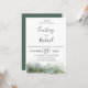 Wasserfarbenwaldlandschaft, Einladung zur Hochzeit. Anpassen von Text, Schriftart, Farbe und Größe. Die Hintergrundfarbe von Rain Forest Green kann ebenfalls angepasst werden.