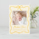 Begrüßen Sie Ihr Baby mit dieser fröhlichen Geburtsankündigung mit einem weichen cremefarbenen Hintergrund, der durch einen lebendigen goldgelben Bogen und ein buntes Rahmen betont wird. Das Foto Ihres Babys ist vorne und Mitte, mit seinem Namen in fett gelben Schriftzeichen und den unten elegant arrangierten Geburtsdetails. Dieses helle und fröhliche Design fügt eine frische, moderne Touch hinzu und bleibt gleichzeitig warm und einladend - ideal, um mit Freunden und der Familie Ihre guten Nachrichten zu teilen.