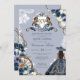 Elegantes rustikales Design mit Charro/Cowboy/Ranch Thema. Mit einem schönen Wappen, luxuriösen blauen und weißen Blumen und hübschen Cowgirl/Cowboy Stiefel