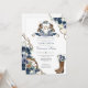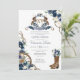 Elegantes rustikales Design mit Charro/Cowboy/Ranch Thema. Mit einem schönen Wappen, luxuriösen blauen und weißen Blumen und hübschen Cowgirl/Cowboy Stiefel