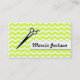 Eine niedliche, trendy Geschäftskarte mit hellen, Neon-, chartreuse grünen Zickzack Streifen und einem Paar Scheren/Scheren. Vervollkommnen Sie für Haar-Stylisten, Haaraufbereiter, Salon, Cosmetologists, Cosmetology und mehr!