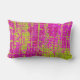 Ein reich strukturiertes abstrakte in den Farbtönen Chartreuse, Olivgrün, Himbeere, Rosa und Fuchsia macht dies zu einem auffälligen Kissen.