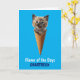 Ein Chartreux-Kätzchen klebt aus einer Eistüte.