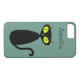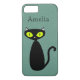 Mod Kätzchen mit grünen Augen und aquamarinem Hintergrund. Wenn Sie einen anderen Fall haben, müssen Sie möglicherweise anpassen, sodass die Kamera Ihren Namen nicht abdeckt. Sie können die Hintergrundfarbe ändern. Personalisieren oder entfernen Sie den Namen!