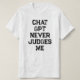 Chat GPT never judges me AI funny geeky nerdy T-Shirt. Looking for a hilarious way to showcase your love or hate for artificial intelligence? We have many AI-themed funny t-shirts! These shirts are the perfect blend of geeky tech humor and casual style. Whether you're a coding whiz, a machine learning enthusiast, or just someone who appreciates a good joke, AI funny t-shirts are here to make you laugh. With witty slogans like "Chat GPT is my best friend", "I'm not a robot, I'm just powered by AI" or "Artificial intelligence scares me". Wearing one of these shirts might spark some interesting conversations about the future of technology and AI.
