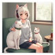 ein Mädchen mit Kopfhörern, das neben einer weißen Katze sitzt und eine weiße Katze neben sich sitzt, Miho Hirano, Furenkunst
