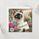 "Mit dieser Katze bedanken Sie sich mit Blume Dankeschön Card auf eine angenehme Art und Weise. Dieses charmante Design mit einer niedlichen siamesischen Katze, die ein wunderschönes Bouquet aus Blume hält, verleiht Ihrem herzlichen Dank eine Touch von Wärme und Freundlichkeit. Ideal, um für jeden Anlass, ob persönlich oder beruflich, eine Wertschätzung zu senden."