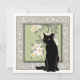 Gegründet auf eine Apfelblüte ist eine gut aussehende schwarze Katze mit goldenen Augen, umgeben von einem verzierten Jugendstil-Rahmen. Künstlerin Margaret Loftin Wititing.