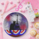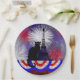 Eine Silhouette der Schwarzen Katze von Théophile Steinlen für den Le Chat Noir Club in einem modernen Ambiente für den Bastille Day. Schwarze Katze mit dem Eiffelturm im Hintergrund und Feuerwerk.