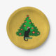 Eine Silhouette von Théophile Steinlens Schwarzkatze für den Le Chat Noir Club in einem modernen Rahmen für Weihnachten mit einem grünen Baum mit Ziergegenständen und der Katze in einem Hut des Weihnachtsmanns.