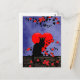 Eine Silhouette von Théophile Steinlens Black Cat für den Le Chat Noir Club in einem modernen Rahmen für den Valentinstag mit der schwarzen Katze mit vielen Rose und einem roten Herzmond.