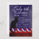 Eine Silhouette von Théophile Steinlens Black Cat für den Le Chat Noir Club in einem modernen Rahmen für den 4. Juli. Die Katze trägt einen Tricornhut. Die Freiheitsstatue ist im Hintergrund mit einem roten, weißen und blauen Feuerwerk.