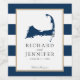 Navy Blau und Weiße Streifen mit goldfarbenem Trimm. Karte von Cape Cod mit goldfarbenem Herzen über dem Chatham Cape Cod (Massachusetts) Gebiet. Ideal für Ihr Cape Cod Hochzeitthema . Wenn Sie eine andere Farbe wünschen, senden Sie bitte eine E-Mail an paula@labellarue.com BEVOR Sie Ihre Bestellung anpassen oder aufgeben, damit eine neue Vorlage für Sie erstellt werden kann.