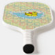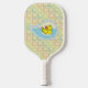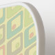Die gelbe Gummifotze schwebt unter den Blasen in einer Badewanne, gewartet für sein nächstes Abenteuer. Ein funky Muster von bunten Quadraten und Kreisen auf einem gelben Untergrund schafft einen unterhaltsamen Hintergrund für die blasen-umschlossene Szene.