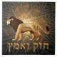 Ein Bild eines Löwen, überlagert auf einem Fraktal-Hintergrund mit hebräischem Text, der "Chazak ve'ematz" (ח ז ק ו מ ץ) liest, was bedeutet: Seien Sie stark und tapfer!, Joshuas Ermahnung an die Menschen, die kurz davor sind, die Eroberung des Landes Israel einzuleiten. (Joshua 1:6) Lass diese Worte der Tora nicht von dir abweicht, chazak, sei stark und tapfer; wenn du den Problemen und Gefahren in dieser Welt gegenüberstellst. Es ist auch üblich, dass jüdische Gemeinden stehen, als die letzten Worte eines Buches der Tora auf dramatische Weise gelesen werden. Der Leser signalisiert die Gemeinde, die dann mit "Chazak, chazak, v'nitchazeik" antwortet (Starke, starke und lassend uns gestärkt werden).