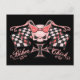 Ein Kick-Schädel und karierte Fahnen, rosa & schwarz, mit maltesischem Kreuz und "Biker Chick" in Schriftzeichen. T - Shirt, Hunde, Karten, Geschenke.