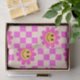 Dies ist niedlich kariert glückliche lächelnde Blume Muster in heißen rosa mit kleinen Quadraten. Es ist großartig aussehendes Gewebepapier für Mädchen Geburtstagspartys