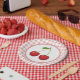 Checked Paper Plates with Cherries for Parties, Baby Showers, and Birthdays - Spring on the Table!