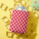 Abstrakte digitale Kunst von rosa und roten Quadraten in einer karierten Formation.