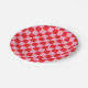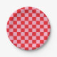 Abstrakte digitale Kunst von rosa und roten Quadraten in einer karierten Formation.