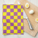 Abstrakte digitale Kunst der lila und gelben Quadrate in einer checkered Bildung.
