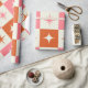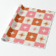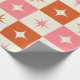Checkered Mid Century Atomic Stars Pink Orange Geschenkpapier