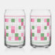 Pink and green checkered square soda glass. Fun soda party glass or for friendly gatherings.
