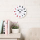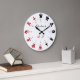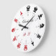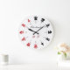 Eine elegante und einfache Schach-inspiriert Wanduhr mit roten und schwarzen grafischen Schachfiguren mit Stunden- und Minutenzeigern auf einem weißen Hintergrund. Der anpassbare Text macht dieses Stück zu einer personalisierten Geschenkidee für den Schachfreund.