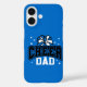 Das iPhone 16 Gehäuse wird in königsblauer Farbe mit einem fröhlichen Papa Pom Druck gezeigt. Passen Sie dieses Objekt an oder kaufen Sie, wie es ist. Lizenzierte Printwerbung
