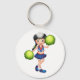 Ein jubelndes Mädchen mit grünen Pompoms. Dieses Design wirkt auf diesem Schlüsselanhänger wirklich effektiv