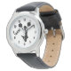 Stilvolle Cheerleader-Armbanduhr, mit der schwarzen Silhouette eines springenden Cheerleader auf weißem Hintergrund. Schwarze Zahlen, die die Stunden darstellen, und ein schwarzer Text, der speziell für den Cheerleader angepasst werden kann. Macht eine tolle Geschenkidee.