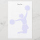 Diese Blätter des Briefpapiers kennzeichnen die Silhouette eines Mädchens in der Spitze und umsäumen, während sie ein pom in jeder Hand während mitten in einer Cheerleader springt hält.