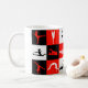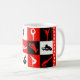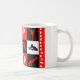 Cheerleading Block-Tasse im Team färbt das Rot, Schwarzweiss. Tasse kennzeichnet 15 populäre cheerleading Bremsungen, Sprünge und stolpernde Fähigkeiten.