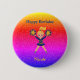"Happy Birthday" Blauer Sparkle Button - Personalisieren Sie diesen aufregenden Geburtstagsknopf mit dem Namen Ihres Cheerleader für ein Party - perfekt!