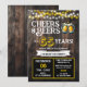 Raise a glass and celebrate in style with this “Cheers and Beers to 65 Years” rustic birthday invitation! Featuring a dark wood background, warm glowing string lights, and bold gold lettering, this design sets the perfect tone for a fun brewery, bar, or backyard celebration.