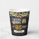Raise a toast in style with these rustic Cheers & Beers birthday party paper cups! Featuring a dark wood background, glowing string lights, and two frosty beer mugs clinking together, this design sets the perfect tone for a fun brewery-inspired celebration. The bold yellow age number and customizable name banner make it easy to personalize for any milestone — from 21 to 99! Perfect for serving cold drinks, beer, soda, or cocktails, these durable paper cups bring your party theme together and add a festive touch to the celebration table.